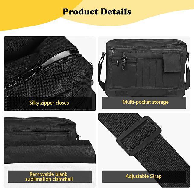 Massive Storage Capacity: Stay organized with one main zippered compartment, one middle zippered compartment, two small zipper pockets, and four slit pockets. * Removable Design for Precision: Features a removable 9.8" x 13" transfer flap, allowing for high-quality, large-format customization that looks professional and integrated.
